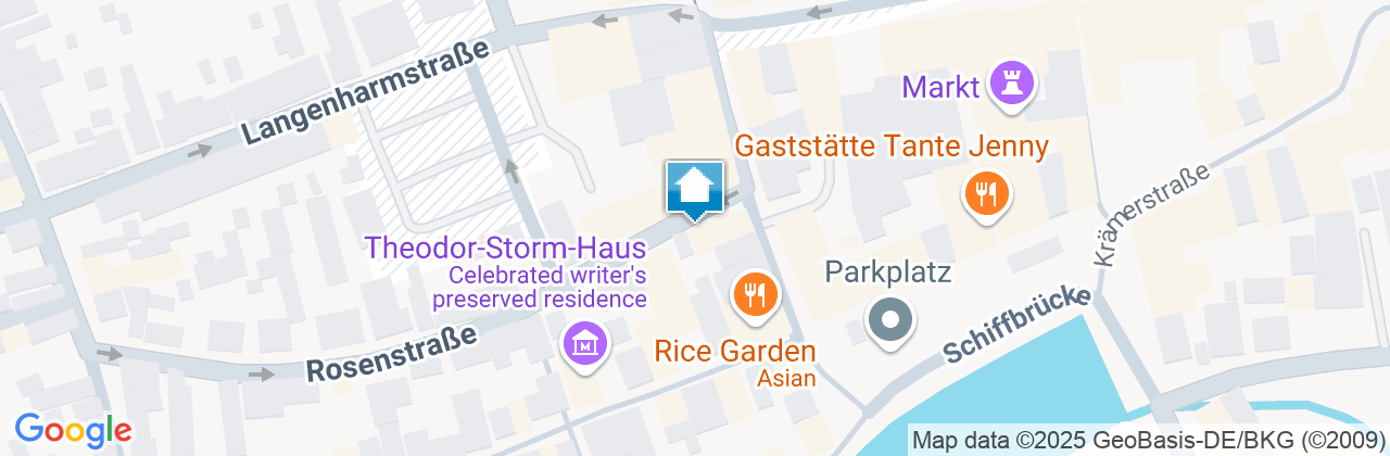 tolle Einrichtung, tolle Lage. Haus ist Handlungsort einer von Storms Novellen.