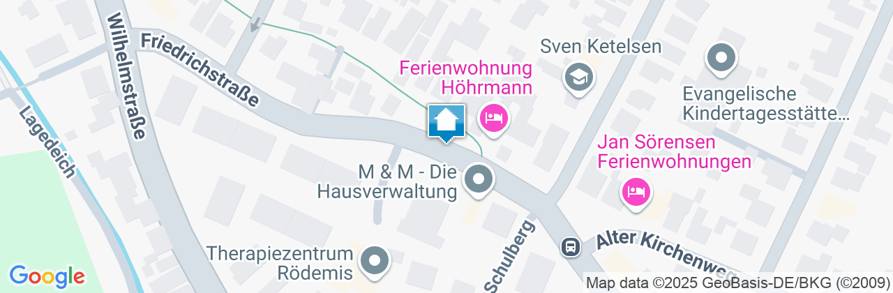 Die Ferienwohnung Höhrmann erreichen Sie mit dem HusumBus - Linie 5 ab dem zentralen Busbahnhof (ZOB). Die nächste Bushaltestelle "Albert-Schweitzer-Haus" ist ca. 100 m von der Ferienwohnung entfernt.