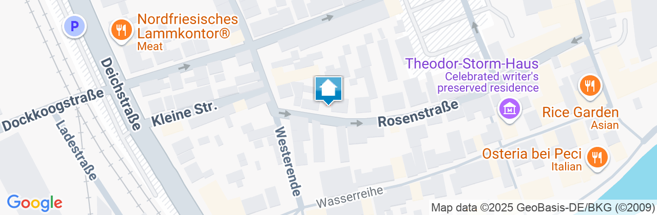 Die Ferienwohnungen Rosenstraße sind zentral in einem Haus in der Innenstadt gelegen in einer Straße mit rosengeschmückten Häusern. Öffentliche Parkplätze (zum Beispiel Hafenparkhaus und Porrenkoog), der Marktplatz, der Hafen und vielfältige Einkaufsmöglichkeiten sind in wenigen Gehminuten erreichbar. Die Entfernung zum Husumer Bahnhof beträgt ca. 900 m. Die Nordsee und den Badestrand erreichen Sie nach ca. 3 km. Die Fahrzeit zur Messe Husum & Congress beträgt ca. 10 Fahrminuten.