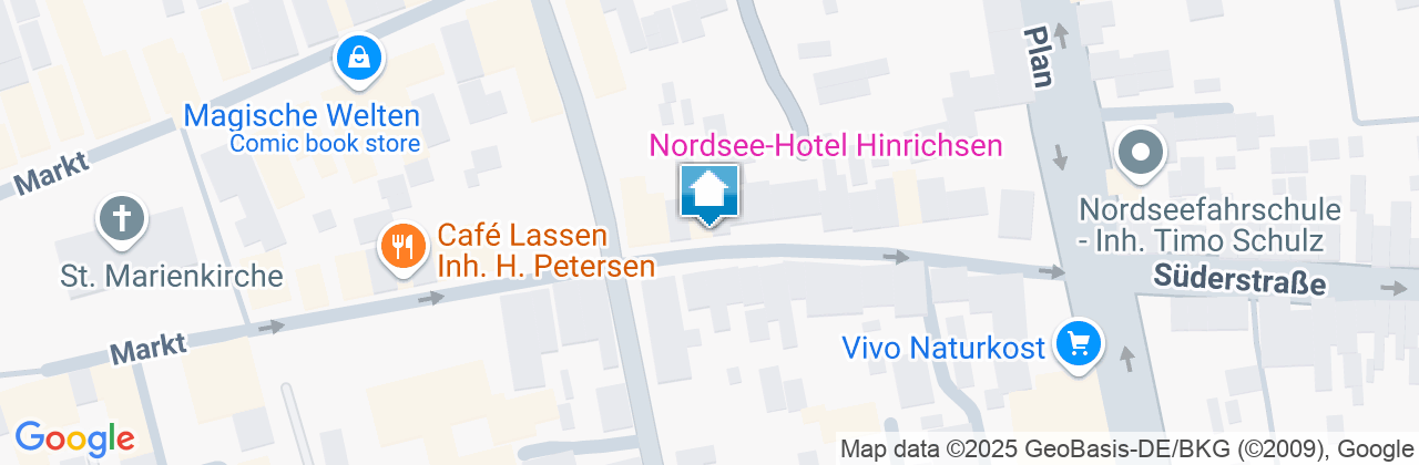 Das Nordsee-Hotel Hinrichsen erreichen Sie mit dem HusumBus - Linie 1 ab dem zentralen Busbahnhof (ZOB). Die nächste Bushaltestelle "Norderstraße" ist ca. 150 m von dem Hotel entfernt.